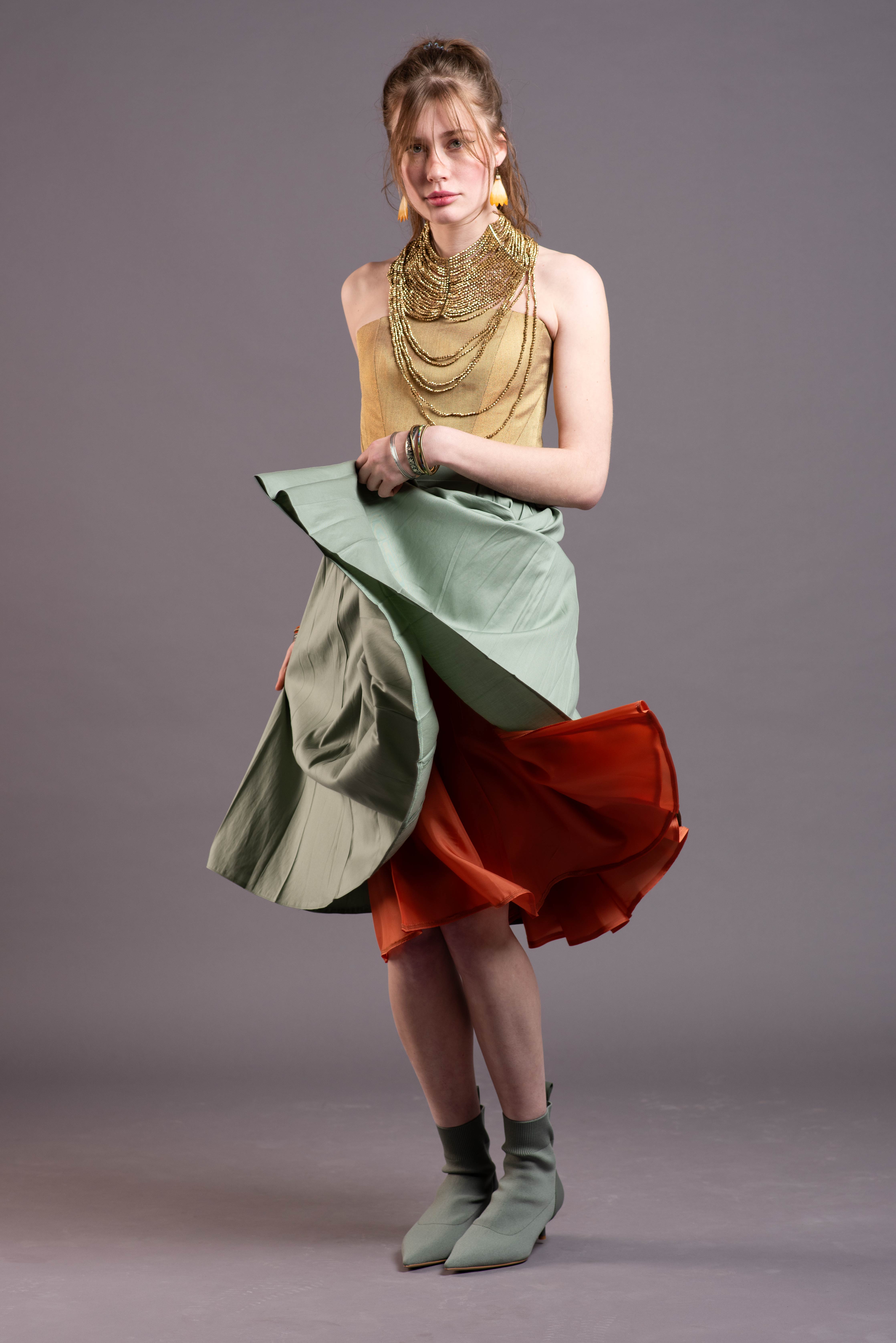 A skirt that flows with you – inspired by the morning light, created for timeless elegance.