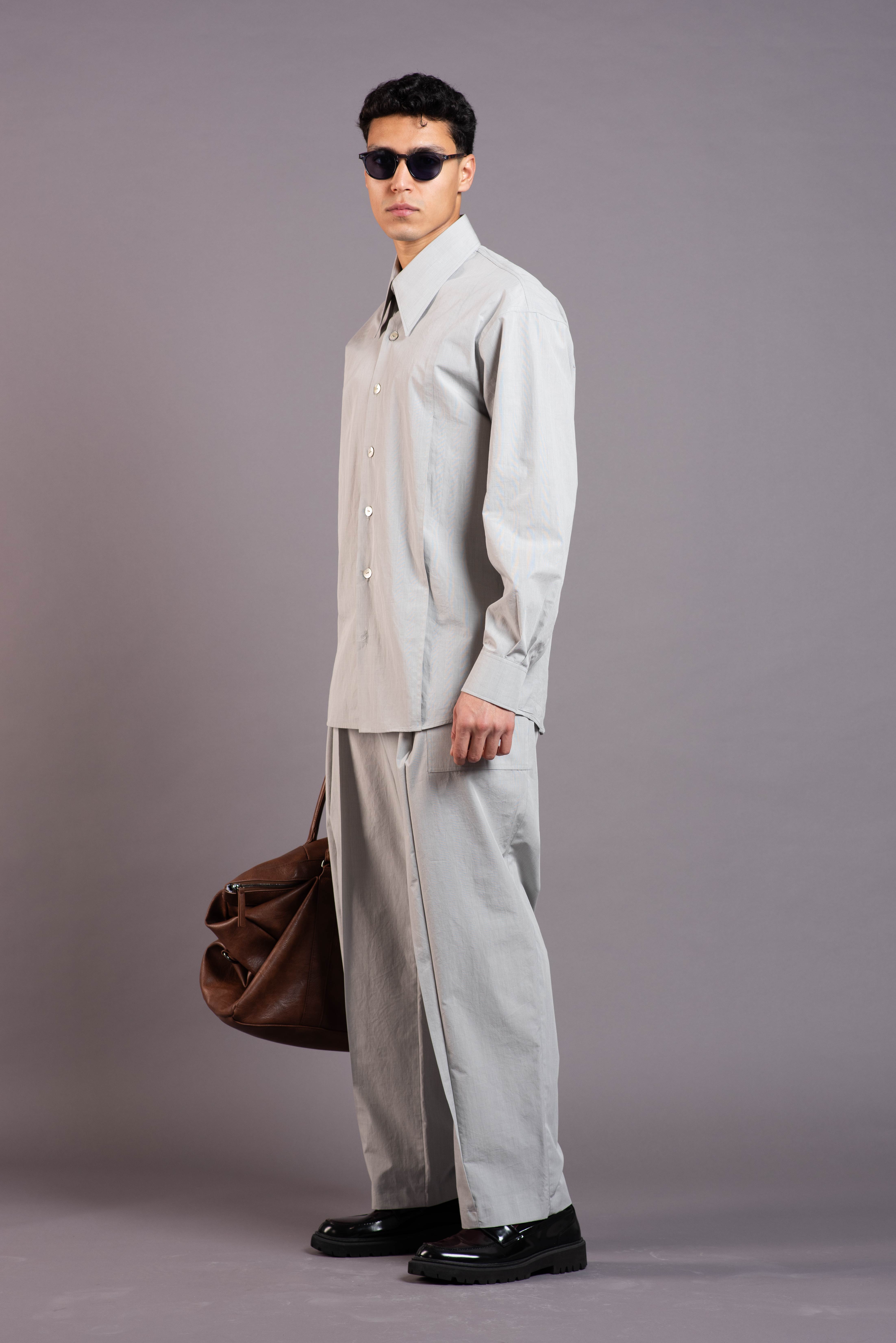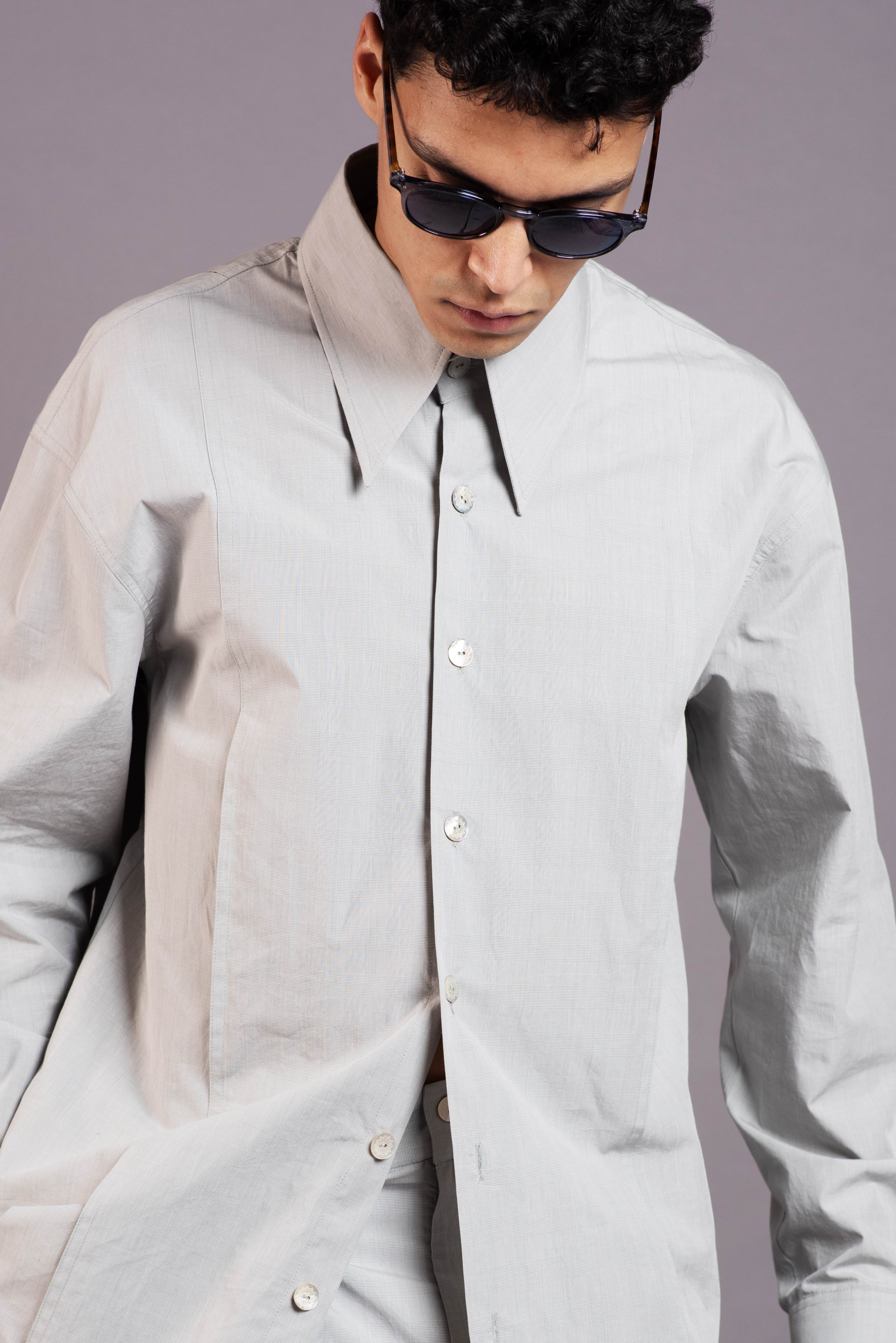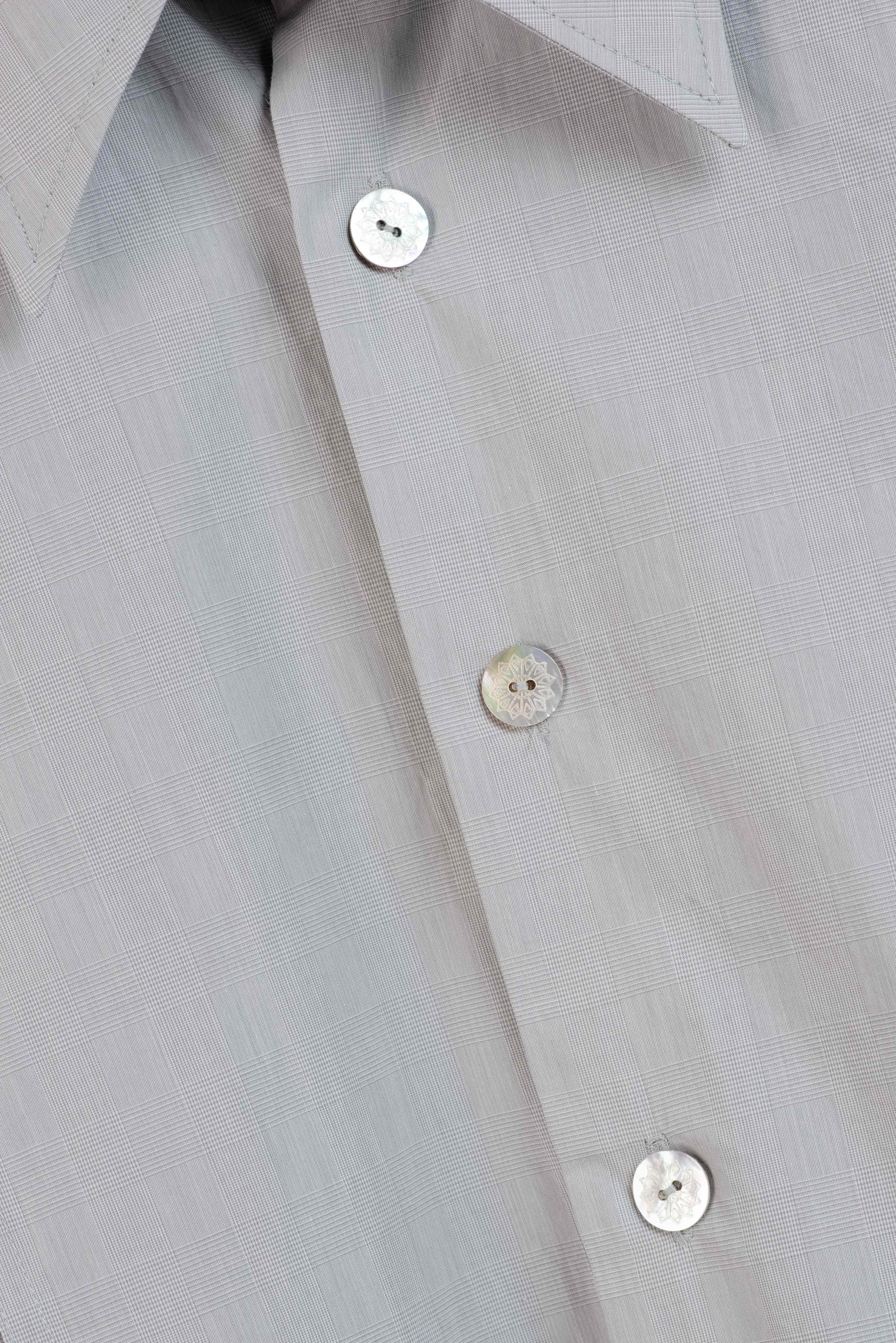 The Sunlit Plaid Shirt is a versatile piece from our "Sunlit Whisper" collection. Made from 100% multicolored woven cotton, it captivates with a fine checkered pattern in light gray and an elegant long-point collar.