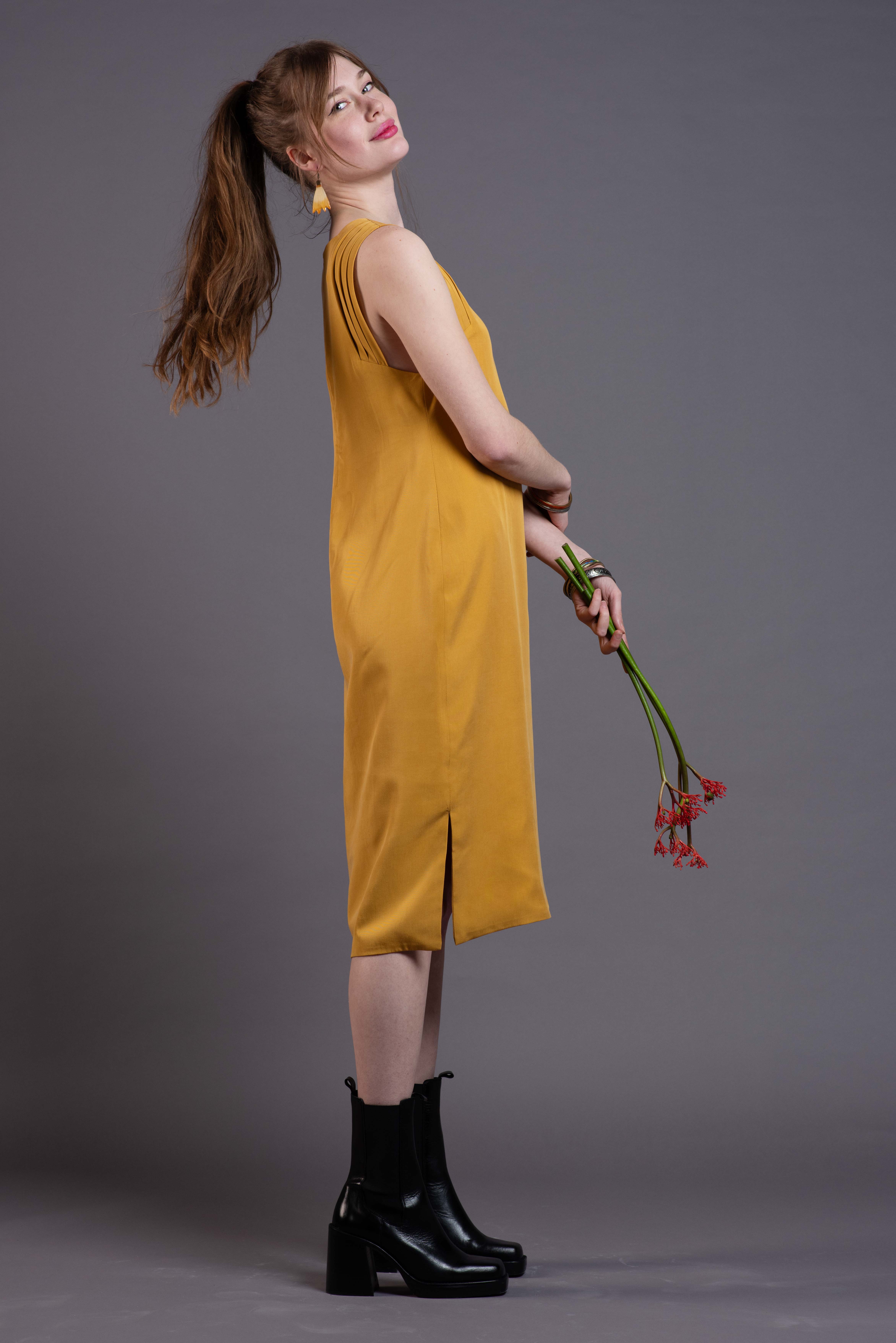 Sunlit Tide captures the lightness and warmth of a sunny day. The soft Tencel fabric creates a gentle silhouette, while the Cupro lining offers a luxurious feel. Perfect for everyday wear or special moments – a timeless piece that can be rediscovered again and again.