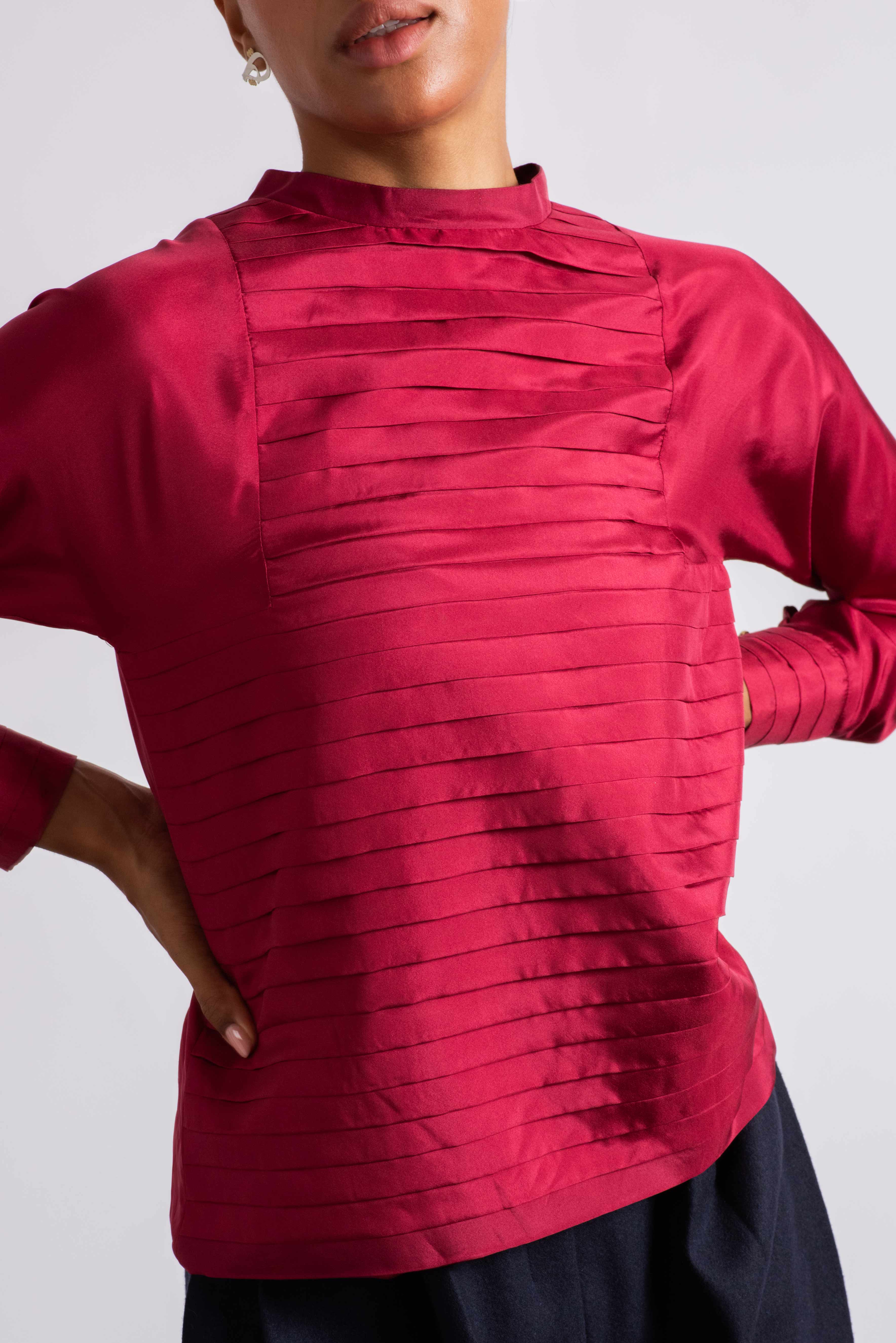 Moonlight Ballet is a blouse that showcases the refined craftsmanship at the heart of the MOONLIGHT collection. Inspired by light, its intricate pleats combined with luxurious silk fabric represent a timeless interpretation of beauty in fashion at Chasho. This elegant piece merges traditional craftsmanship with modern design, adding grace and sophistication to any look.